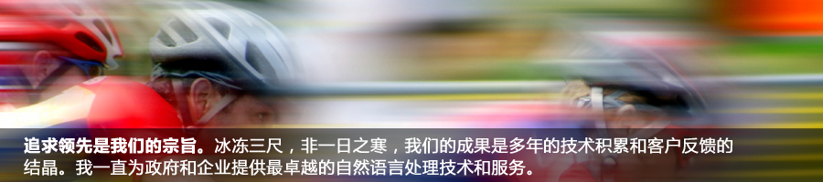 自從成立以來,我們?yōu)榭蛻籼峁└咝Ш椭悄芑男畔⑻幚砉ぞ吆妥稍兎铡T谶@個信息爆炸的時代,如何讓互聯(lián)網(wǎng)上和企業(yè)內部的海量信息為我們帶來更多的價值需要高度智能化的信息處理工具。我們提供的技術能夠高效并且準確的對大量文本信息進行處理、檢索、挖掘、翻譯等工作,并可方便地與信息系統(tǒng)的其他模塊進行整合。